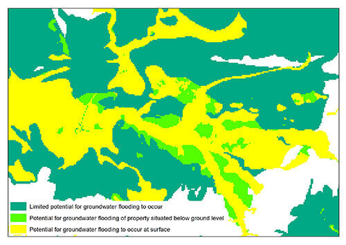 A Rising Threat: Climate Change Impact and Groundwater Flooding As the ticking timebomb of climate change ticks faster, there is a growing hidden threat lurking beneath your feet, silently impacting communities, properties, and assets. Sustainability Thought Leadership 23.03.2023 Dive into this article as we uncover the impact climate change has on flooding, addressing the urgent need to think differently when assessing this subterranean hazard and the innovative approaches being taken to protect our cities and lives from the unseen dangers that lie beneath the surface. Understanding Groundwater Flooding Flooding will generally bring to mind images of rivers overtopping their banks; large waves and high tides exceeding coastal defences; reservoirs breaching their impoundment; and heavy rainfall overwhelming drainage infrastructure. These occurrences can be rapid, dramatic and will often make headline news. The processes behind such flood events can be observed, measured and predicted. These sources have also been studied and mapped extensively, with ever-increasing levels of detail, allowing emergency planners, local authorities, and developers to appraise risk and make appropriate decisions. However, one source of flood risk lies hidden beneath our feet and, as a result, is much less understood – groundwater flooding. Causes and Characteristics of Groundwater Flooding Groundwater flooding occurs when the water table rises above ground elevations or rises to depths containing basement-level development. It is most likely to happen in low-lying areas underlain by permeable geology. This is most common on regional scale chalk aquifers, but there may also be a risk on sandstone and limestone aquifers or on thick deposits of sands and gravels such as that in a river valley. Rising groundwater can be caused by long-duration rainfall events that recharge aquifers beyond their capacity, or it may be caused by high river levels or tides, driving water through the ground due to a difference in hydraulic pressure. This means flooding can bypass traditional flood defences and rise directly through floors or underground rooms. Also, groundwater may not appear where you would expect it to, such as valley bottoms; it can also emerge on hillsides. Groundwater flooding can also be much slower to occur than surface flooding. It will usually happen days or weeks after heavy or prolonged rainfall and may last weeks or even months. Impacts and Challenges of High Groundwater Levels The potential effect of high groundwater levels is not limited to the observable above-ground or basement-level flooding. Shallow groundwater can impede the drainage of septic tanks and soakaways, undermine/ destabilise footings and foundations, and damage below-ground infrastructure due to water ingress and buoyancy. High groundwater can raise river levels, surcharging drainage outfalls and reducing a river’s capacity for a fluvial flood event. It can also waterlog land leading to a larger than expected flooding response from storm events. The Lead Local Flood Authorities are responsible for managing groundwater flooding risk. However, aquifers can be of a regional scale, spanning many authorities, hindering a coordinated appraisal and management of risk. An Environment Agency study found limited evidence of groundwater flood risk being considered in spatial planning. The Environment Agency, which has a strategic overview of all sources of flooding, offers a groundwater alert and warning service, but only in areas that have historically experienced groundwater flooding. Historical incidents of groundwater flood events may have been masked by, or perceived to be caused by, surface water or fluvial events, possibly hiding the true extent of the groundwater issue. Evaluating National Groundwater Flooding Susceptibility Maps The British Geological Survey (BGS) has prepared national “susceptibility of groundwater flooding” maps that attempt to identify areas with potential for groundwater flooding. However, this data is based on broadscale geological and hydrogeological data that may not reflect local topographical and geological intricacies or drainage infrastructure. Limitations of Existing Data and Modeling Approaches Several private consultancies have tried to improve upon the BGS data by considering generalised topography and the development of in-house models. But the proprietary models are not published to allow for scrutiny, and they still relate back to the same national scale datasets1. Importantly, none of these data accurately quantify the probability of flooding, the rate and duration of flooding, nor the consequence of the flooding – all factors required to identify and manage risk robustly. And these are just the limitations when assessing the present-day flood risk; things get more complicated when future climate change is considered. The Influence of Climate Change on Groundwater Flooding Climate change in the UK is predicted to lead to milder, wetter winters and hotter, drier summers. Rising temperatures and variation in rainfall patterns will change how aquifers recharge. The recharge season could become shorter, and as aquifers are recharged more effectively by prolonged rainfall, a long-term decline in groundwater level may be expected. However, the winter recharge period may be much wetter, leading to larger and more rapid fluctuations in groundwater levels and, consequently, a potential increase in the severity of groundwater flooding events2. Complexities of Predicting Future Changes in Aquifer Levels Predicting the future change in aquifer water levels is also complicated by groundwater rebound, where artificially depressed groundwater levels are returning to natural levels due to a decrease in abstraction for industrial activities in major urban centres such as London, Birmingham, Nottingham, and Liverpool3. Conversely, it could be expected that greater abstractions could be made in the future due t